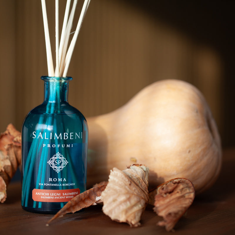 Seit jeher liegt uns bei Salimbeni Profumi der Respekt für unseren Planeten am Herzen. Wir setzen verantwortungsbewusste und nachhaltige Praktiken in jeder Produktionsphase um: Wir minimieren die Transportemissionen, die ausschließlich per Land erfolgen; wir verzichten auf Farbstoffe und bevorzugen die Verwendung von erneuerbaren und wiederverwendbaren Ressourcen wie Glas für unsere Diffusoren und natürlichen Holzstäbchen. Dabei wählen wir ausschließlich die besten Rohstoffe, 100 % Made in Italy.